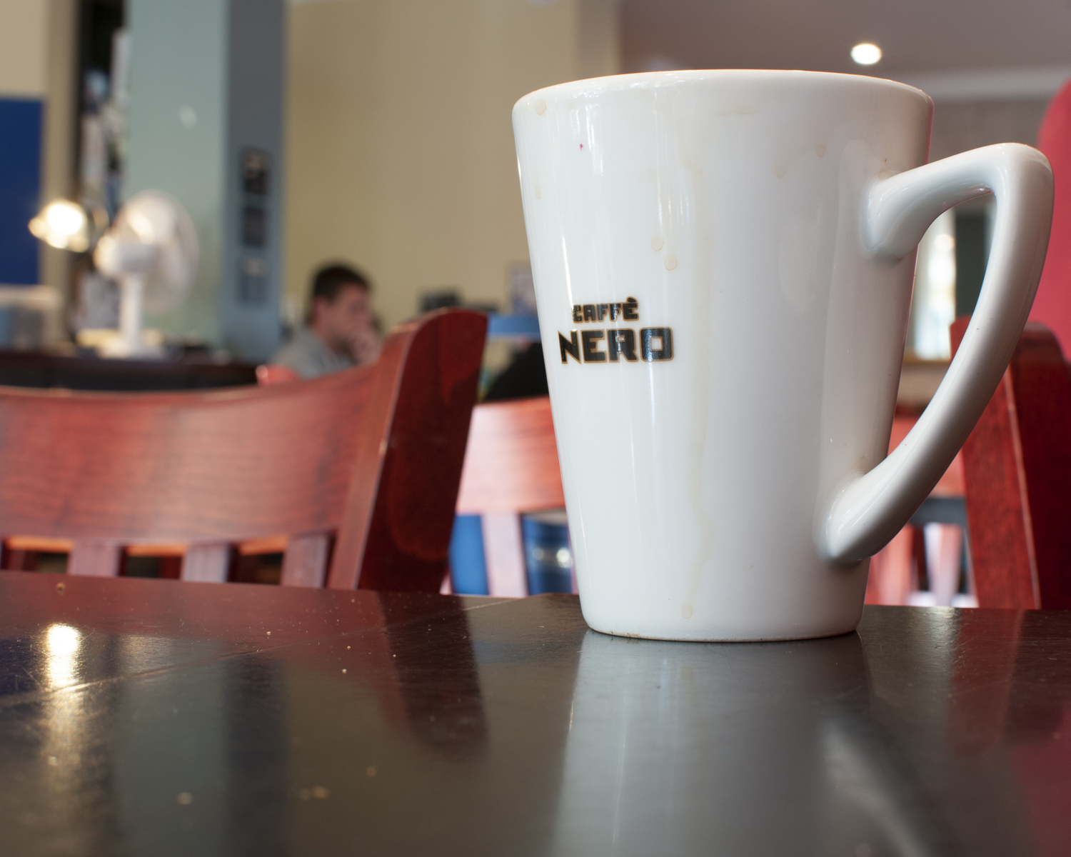The lines on the road are as clear direction as the eye needs, but the building also adds it’s own depth, broken only by the cafe sign.