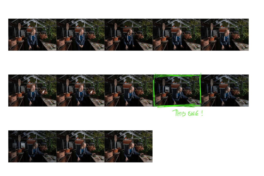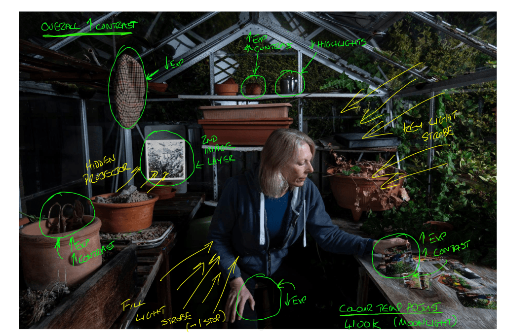 The greenhouse contained many potential props, but their use would need careful planning to give enough of a sense of time passing without dominating the frame and potentially any narrative from the image.