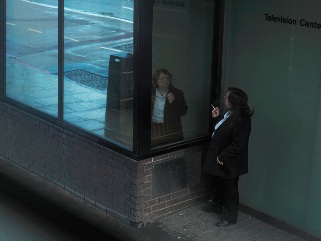In this photograph we see a woman having a cigarette break outside what looks like a corporate building. She looks at her own reflection in the glass of the building, which immediately begs the question “what is she thinking about regarding her own image?” She may be judging her appearance in some way or even regretting the habit she is indulging. What we see from the viewer perspective is more of her expression in the glass than when we look at her directly. The idea of the reflection being an alternative reality is emphasised here. When we look further, we see that the scene is actually a woman sheltering from the rain; the evidence is shown by the contrast of the tone of the dry patch of ground she is standing on to the wet pavement. The left hand side of the frame reveals the wet ground reflected in the same glass building that the woman is looking at. For me, this is a very strong connection with Tennyson’s poem. The lady in the scene can only see the reflection of herself and her environment in the glass rather than turning to look out into the world. While perhaps not as obvious as Wall’s Invisible Man, the image asks the same questions around how and why the woman finds herself gazing on her own reflection. The notes refer to the false sense of intimacy of reflected self-portraiture and I believe this image makes that point. We can relate to the woman on her break and we can see her whole face in the glass but not when we look directly at her. There is almost a sense of connection but detachment in the way the subject is arranged with relation to her reflection. The image also contrasts light and dark in the larger reflection of the street, which for me points to a further detachment of the woman from the rest of the world. Starkey has clearly taken inspiration from literature in a similar way to Wall, but instead of creating a visual for the text that comes through as the main narrative for the image, she makes her work much more metaphorical. In her later work, Starkey declared that she wanted to represent women honestly and without judgement, citing ““I really think that visual culture is the last battleground for women’s equality and freedom” [3]. When we read these words, they starkly contrast the situation that The Lady of Shallott found herself in, unable to connect with or appreciated the world without temptation from the opposite sex. That temptation ultimately led to her destruction. Starkey’s work appears to suggest that while these constraints are clearly not real, they are often the perception of others.