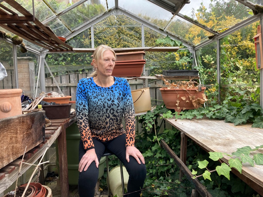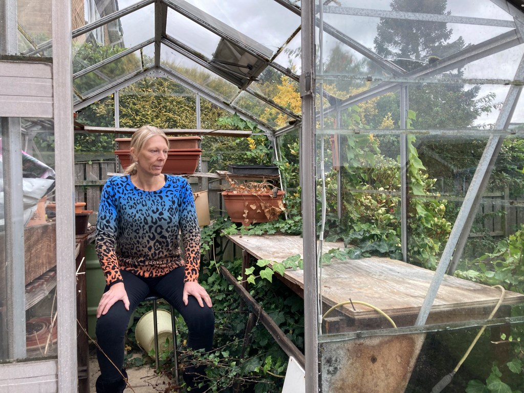 While looking at the greenhouse in the ‘Bryan’ photograph, I asked my mother-in-law where the picture was taken, naturally assuming it would be some previous house they had lived in. The answer was the same house she lives in now. The greenhouse still stood in the same place in the garden as in 1986. However, when Bryan became infirm towards the end of his life, the greenhouse wasn’t maintained and had fallen into disrepair. For me, this was a stroke of good fortune as it meant that I had a potential setting for my photograph. I took a series of contextual shots during that visit to capture the scene as it is now, including one of my wife sitting in the same position as Bryan.