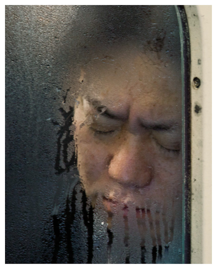 Here we see two of the commuters, seemingly asleep during their commute. In a video interview about the series [5], Wolf stated that his subjects looked exhausted and when the train stopped, the ones that were asleep would often wake and be greeted by the sight of him and his camera. Some elected to respond by covering their face or giving a rude gesture at Wolf, while others simply closed their eyes again to block out the intrusion. Whatever their reaction, Wolf’s portraits show the treadmill of life in the megacity that is Tokyo, the people ensuring discomfort in order to get to their destination. The photograph on the left shows the man with his face distorted by being pressed up against the window, but oddly he looks peaceful. How could this be so with what we suspect is an uncomfortable posture? Has he escaped through listening to something through his headphones or is he actually asleep? The photograph on the right shows a similar posture but the expression is one of a frown. Could this man be reacting to Wolf or is his just miserable about his situation. In both images, the view through the misted window emphasises the sense of confinement with others, which is a powerful aesthetic. When I first saw this series, I was struck by the presence of typology but also the many layers of interest in each image, which initially looks like all of the others. Wolf used typology throughout his work with what some would consider mundane subject matter. His ability to reveal powerful stories by gathering photographs that have the same attributes is equally effective in portraiture as it is in landscape.