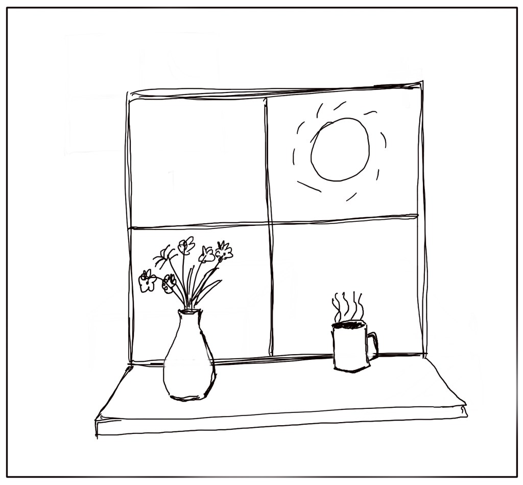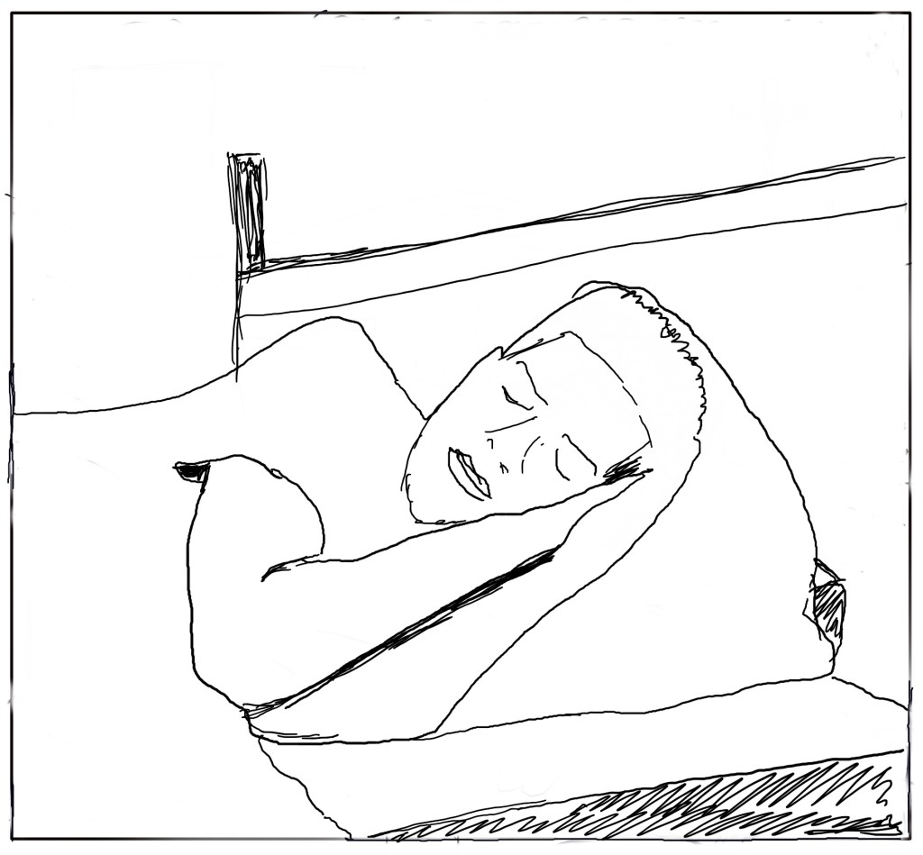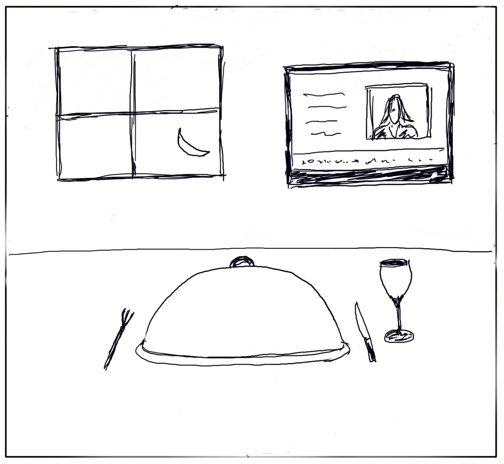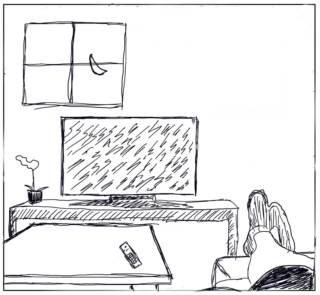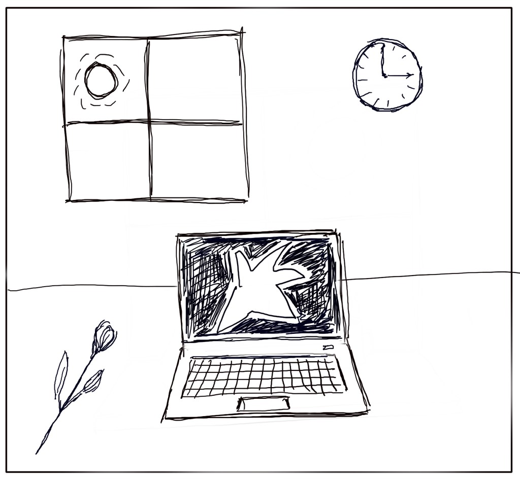 Without any captions or text, the series shows the progression of someone’s day, starting with them being in bed the night before and ending with them going back to sleep at the end of the day. The events in between are familiar with work, exercise, dinner and relaxation featuring as the day progresses. I deliberately didn’t add much in the way of additional context, apart from the sun, moon and crucifixes, primarily because of my lack of skill at drawing.