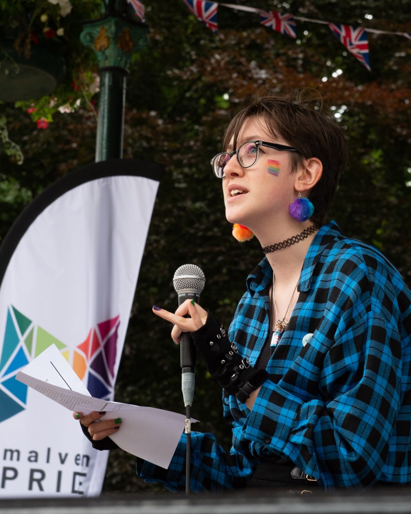 In this image, a speaker is reading out her protest poetry about the treatment of young trans people by the elements of society that don’t recognise their gender. This image is the only one in the series of 90 images where the subject isn’t smiling or enjoying themselves. I took the picture because I suddenly became aware of the need to photograph the counter-aesthetic, but on reflection I should have made that part of my practice on the day.
