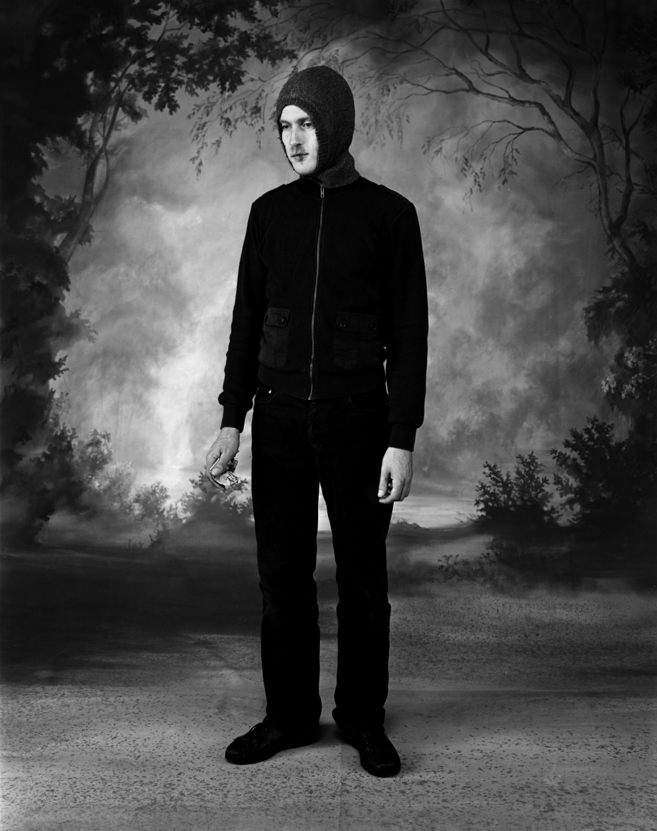 With Strand’s series Gone Astray, we have something similar to Penn’s work in the use of a single studio backdrop. In this work, the subjects are young people who look at first glance as if they have been brought into a studio to be photographed ‘as is’ by Strand. When we look closely however, we see that the subjects each have some kind of damage, either to themselves or their clothing that asks us to question how the series hangs together. Is it a series of random people that the artist has coopted to be in the photographs or is it a carefully controlled series of contextual elements that tells a story of the disaffected urban youth? The answer is, of course, that each image is staged as a series of cosplay situations with the props, clothes and poses being carefully stage-managed. Examples from the series can be seen below: