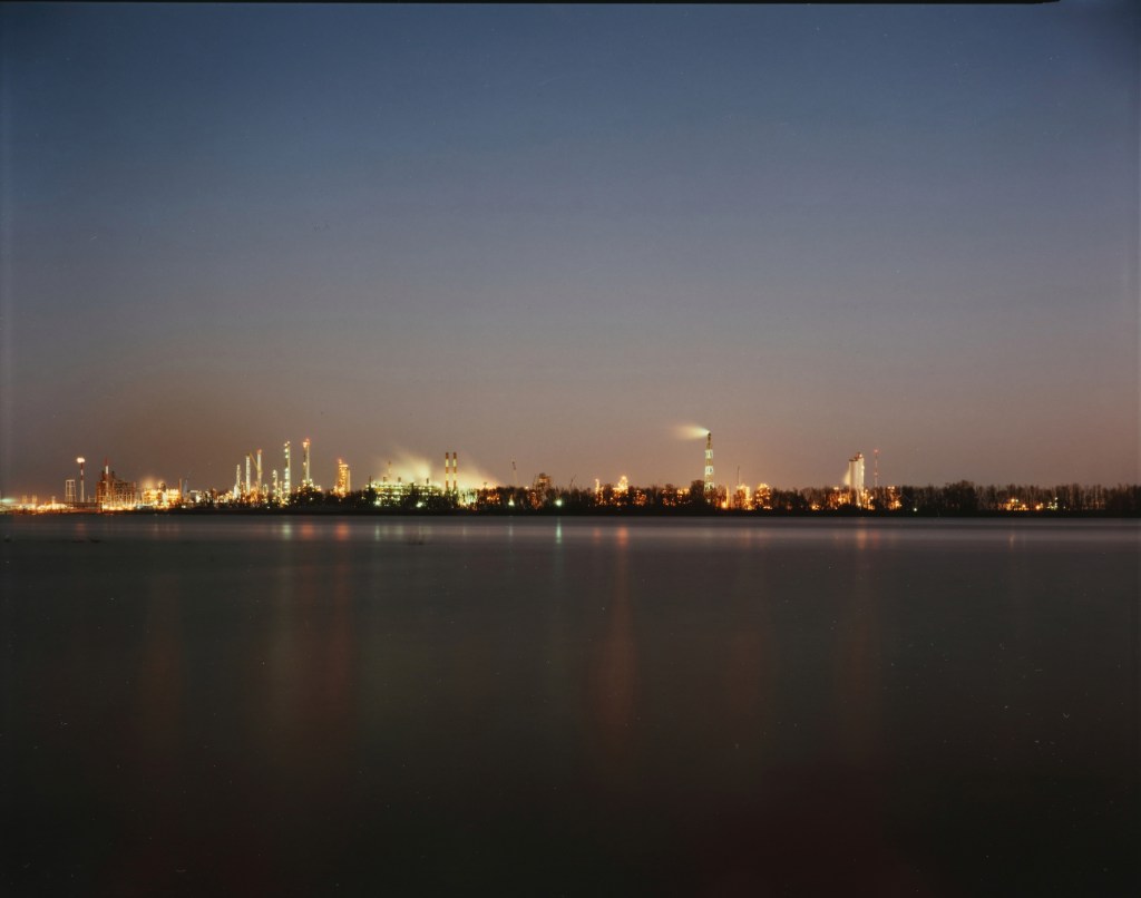 These images are visually very similar, both depicting a wide-open landscape with some form of human presence within the frame. They are both shot on large format film with the obvious difference being one is colour and the other is black and white. Moonrise… is perhaps the most famous image by Adams, probably the most recognised landscape photographer in history. This image is famous for the story about how it was made almost as much as the composition. Adams was travelling back from a failed day’s shooting and saw the gibbous moon, lit by the fading sunset. He rushed to set the camera up, couldn’t find his light meter and worked out the exposure from his knowledge of the luminance of the moon. The story reinforced the legend of Adams as a ‘technical’ photographer. Misrach’s image, has no back story, being part of a documentary series about the impact of the petrochemical industry on the environment in ‘cancer alley'[1], a region of Louisiana. Outside of the artistic intensions, the images have other visual differences. Moonrise… is very precise and sharp, exposed carefully for the moon’s luminance, whereas Misrach’s picture is a deliberately long exposure. The fine details of the refinery are lost in the flattened movement of the water and the smoke rising from the buildings. Where Adams captures the natural light impacting on the buildings, Misrach represents the light pollution impacting on the environment; the antithesis of each other. The technical codes used create a sense of wonder in Adams’s picture and his familiar use of scale makes the manmade part less significant in the context of the desert space, where Misrach’s image is depressing. The light pollution creates artificial colour in the sky and is reflected in the water in lines that lead towards the viewer. Misrach’s image relies on colour to create this mood.