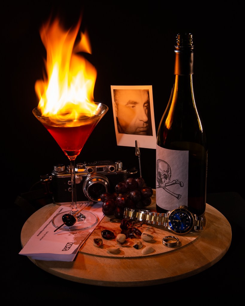 The combination of analysing Claesz and making my own still life that uses similar codes and ideas has given me a new perspective on the genre. More than the classical fruit scenes, the Vanitas still life paintings were multi-layered in their connotations, using signs that provoke a sense of dread in the viewer. They combined the artist’s skill in representing light with an understanding of form and luminance that draw the attention of the viewer to the powerful iconography. With my image, I tried to assemble a collection of items that paid homage to Claesz’s image, as well as recreating the directional lighting and matched tones. Once I’d included the camera as representation of ‘enjoyable pursuits’, I realised that there was going to be some diversion from the tonal qualities by introducing harsh highlights. When I realised this, I included my watch to add balance to the spatial composition. One element in classical still life that intrigued me was the use of candle light. For me, this was where the differences in the skills of the classical painters varied considerably. Some master practitioners, such as Rembrandt, really gave a sense of the scene being lit by this natural source, while others used artistic licence with the brightness of the flame and its fluid movement. That inspired my lighthearted criticism in including the flaming cocktail. I wanted the scene to appear to be lit by the flame alone and for it to look completely natural. For this, I used a slow shutter speed rather than a fast one to freeze the flame. The scene is fill-lit by a two strobes and a further LED with a warm colour temperature, which when combined with the key light gives a natural feel. The most important part of this assignment for me was the post-production analysis using the ideas of Terry Barrett, with which I was able to re-evaluate what I had intended to achieve with the picture.