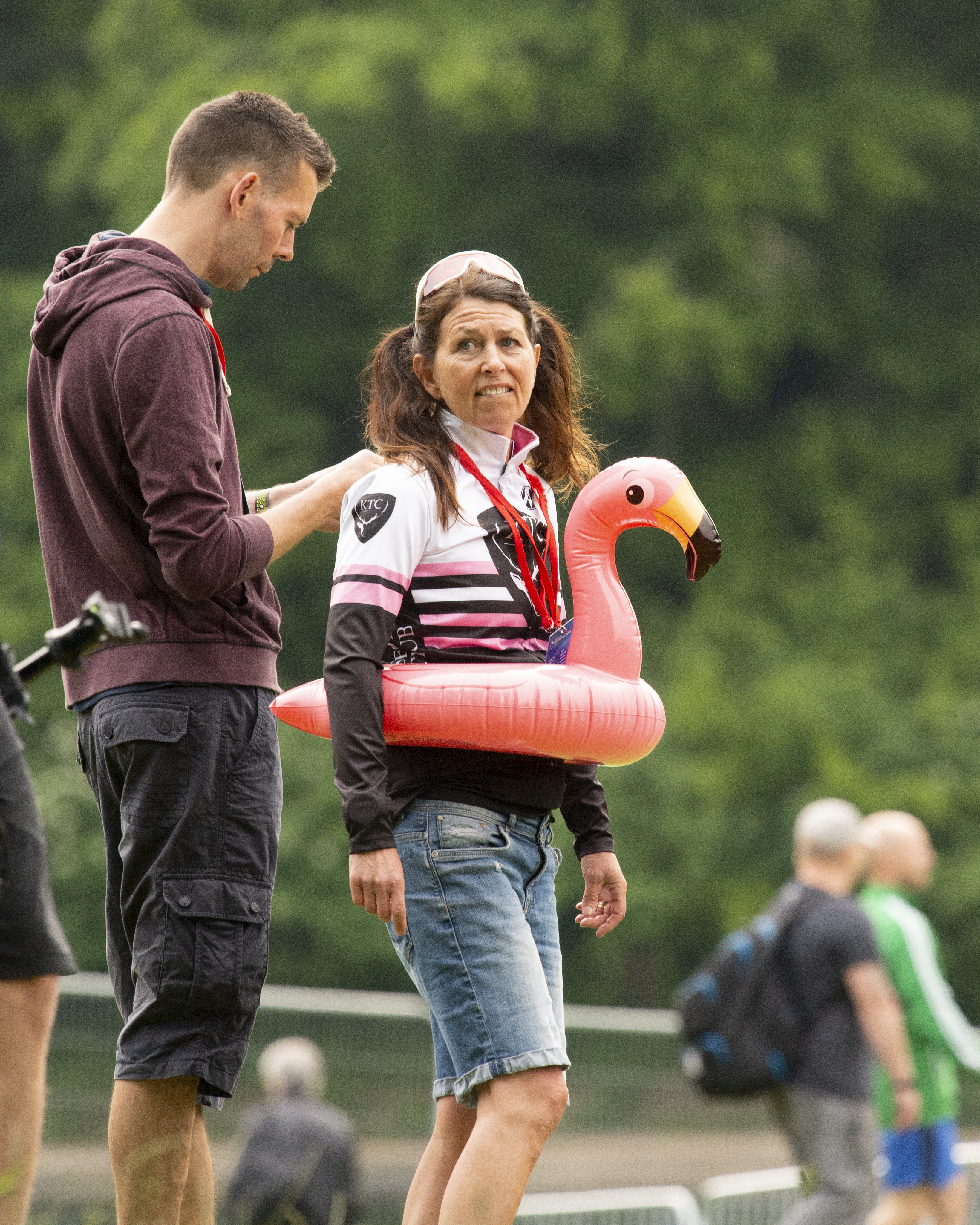 With this series of images, each subject is unaware of my presence, but connected with someone else. One is a shot of my wife completing the swim leg of a race, being helped out of the water. I chose this shot because of the subtlety of the communication between the two subjects in the frame. My wife is looking towards where she has to exit the water and the assistant is looking for the next swimmer he needs to help. Although their gazes are averted from the camera and each other, their communication is clear as he helps her find her feet after the long swim. Two is of a spectator I spotted at a recent event. Her peculiar outfit garnered a lot of attention but she was completely oblivious to it. Her averted gaze towards her husband seems to seek some form of engagement but he is ignoring her. Was he embarrassed or just distracted by something else more interesting than a woman wearing an inflatable? Three was shot during the recent Leeds triathlon and shows a competitor angrily addressing another athlete. It followed an incident where the former (Alistair Brownlee) allegedly impeded the other swimmer and was subsequently disqualified. The gaze in this image has a very clear emotion attached to it, but is made stronger by the way that the other athlete ignores the abuse, electing to focus on his own race instead. Four was the complete contrast to Three, where the winner of the men’s race (Alex Yee) was being cheered on as he turned toward the finish. In this image we have the joy of spectating a major event in the gazes of the supporters, but Yee isn’t looking at them. His focus remains on the race, even though he’s clearly ecstatic about his impending win. The image combines joy in the whole scene. I chose Five because of its closeness to being a direct gaze. It shows a local athlete after he’s finished a race and while his gaze might look as though it’s locked onto my presence as the photographer, the reality is that he’s not really looking at anything. This ‘thousand yard stare’ is fairly common when someone crosses the finish line and is usually replaced quickly by wanting to find their supporters or fellow competitors to discuss how the race went. For me, this shot allows the viewer to relate to that moment of vacated thought whilst asking the obvious questions about how he feels.