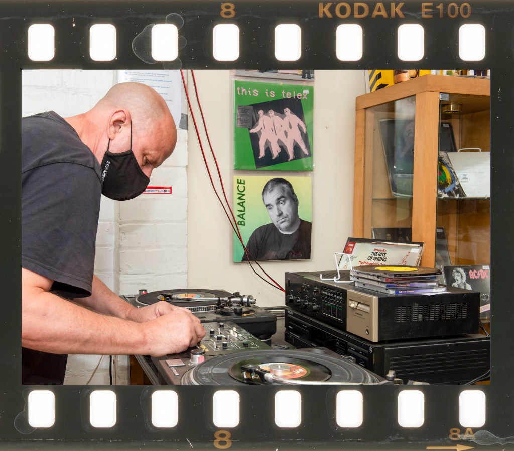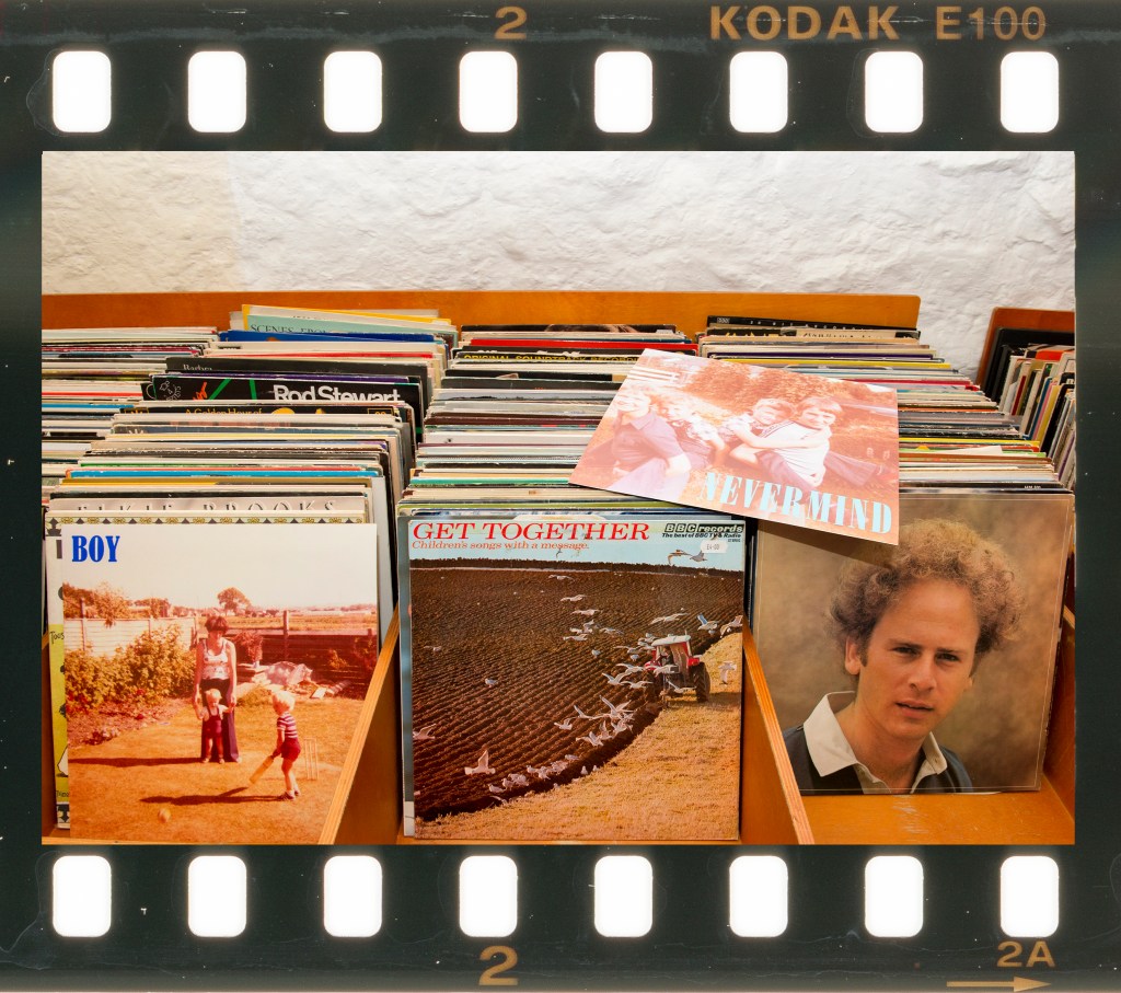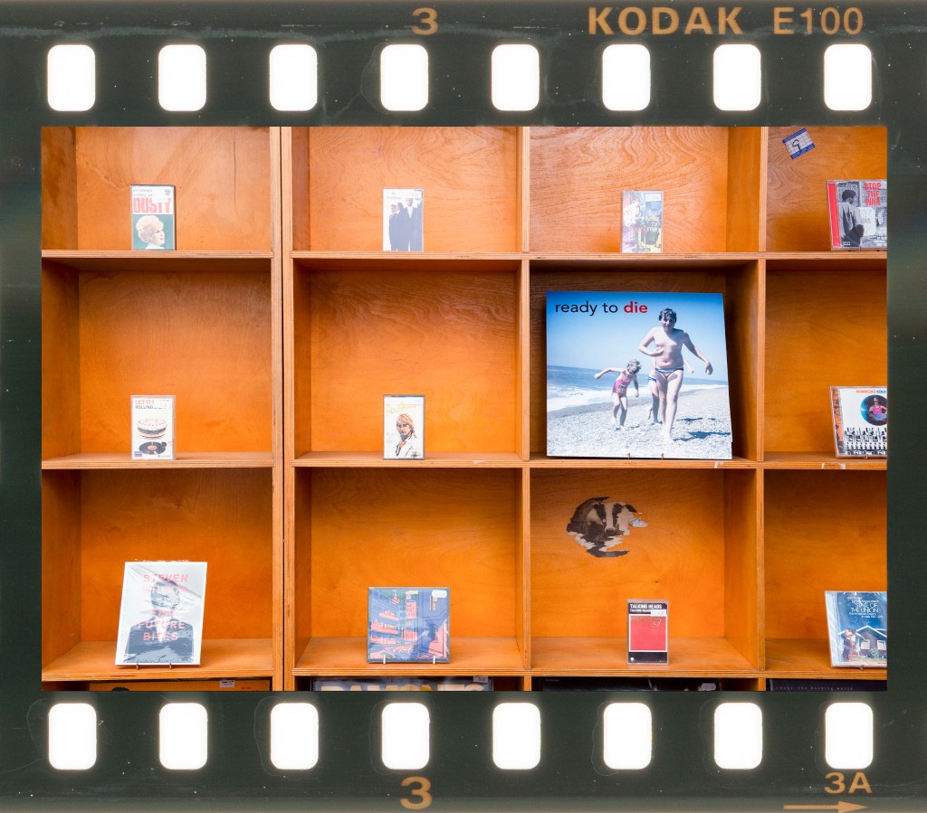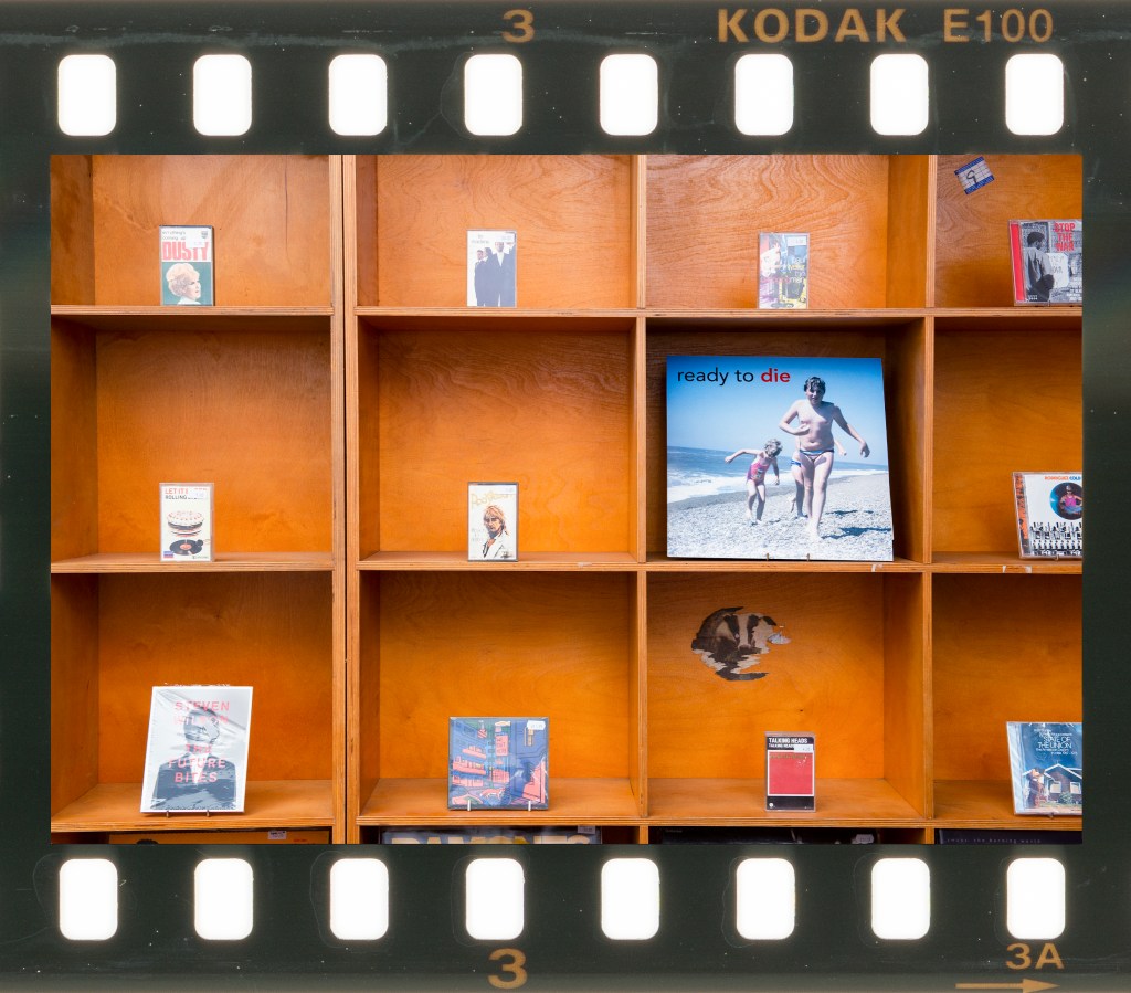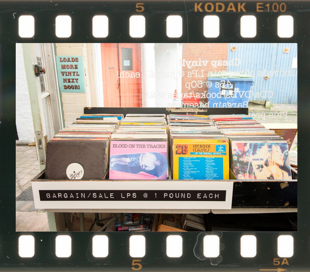 I shot each photograph with a single speedlight flash and kept them as landscape format for consistency. While thinking about this work, I was reminded of another revival in photography that echoed vinyl. Film has undergone a resurgence in the past few years and a specific example is Kodak Ektachrome E100, which was discontinued in 2018 only to be reintroduced 5 years later. Like vinyl, film is an analogue and often imperfect medium so I decided to present my series as a set of Ektachrome film frames. The scans of the film strips show the imperfections such as water marks, dust and minor scratches, which I felt added to the nostalgia of the images even though they were shot digitally.